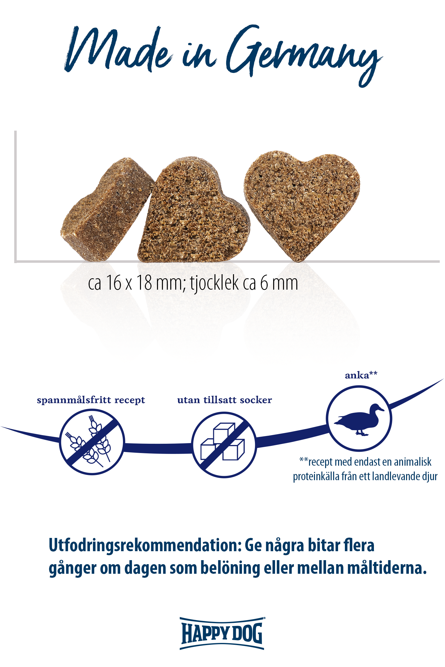 Mjukt, spannmålsfritt bortskämningssnacks med välsmakande anka