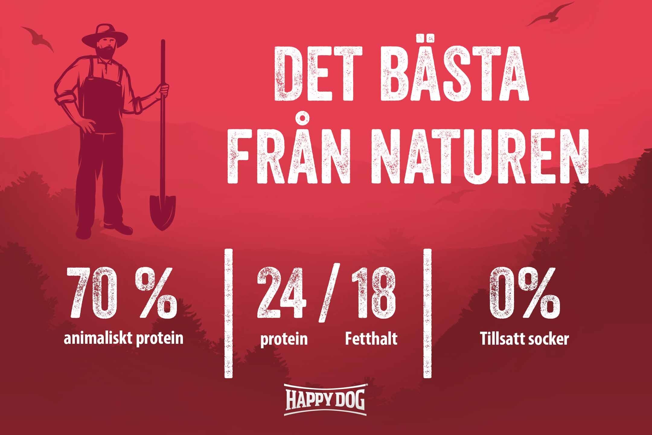 Balanserad naturkost med regionala ingredienser för aktiva hundar