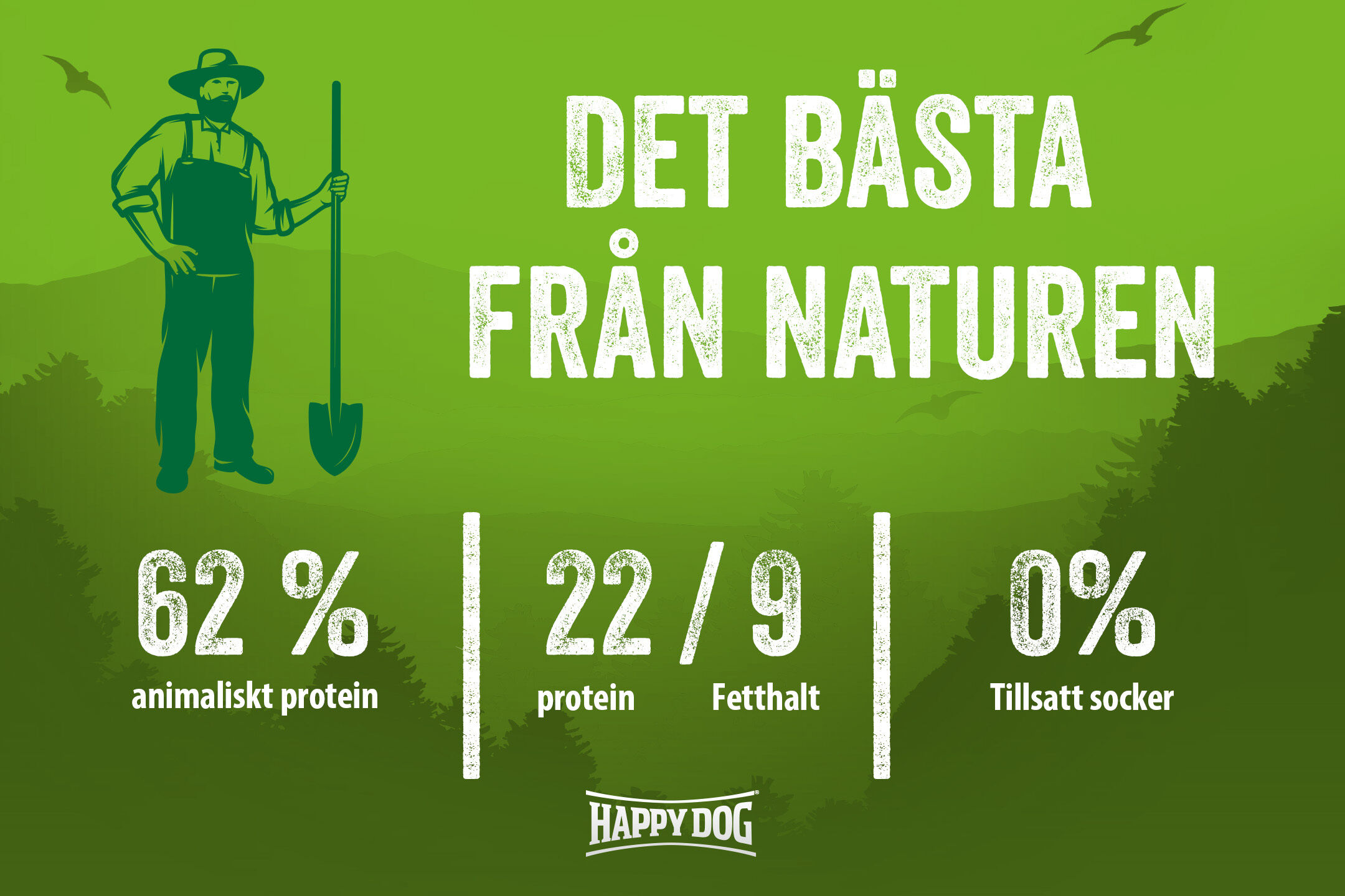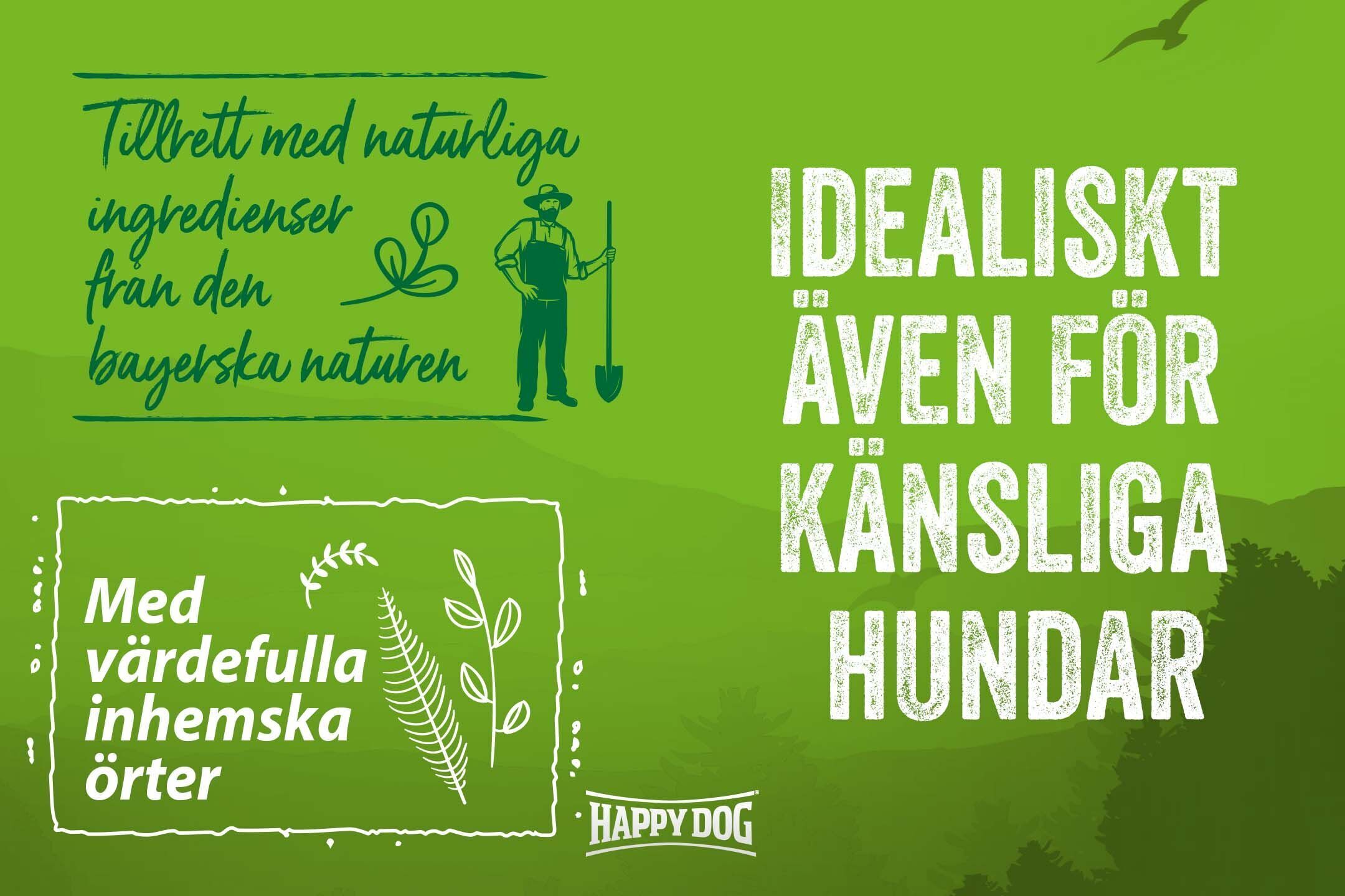 Har din hund en känsligt mag-tarmkanal? Då kan Happy Dog NaturCroq Lachs & Reis, det balanserade och hälsosamma helfodret med de bästa ingredienserna från den bayerska naturen, hjälpa den. De goda, hårda kroketterna innehåller endast ingredienser av högsta kvalitet som lättsmält lamm, väl tolererat ris och hälsosamt fullkornsspannmål från regionen. Lammet ger din älskling högkvalitativt animaliskt protein och riset är en mycket god mag- och tarmvänlig kolhydratkälla. Fullkornsprodukter är viktiga leverantörer av fibrer. De är även regulatorer för tarmaktiviteten, mättar och främjar matsmältningen. De kan även stödja tarmhälsan. De levererar även många B-vitaminer, mineraler, som magnesium, järn, selen och zink, och är fulla av komplexa kolhydrater. Det goda receptet avrundas med värdefulla lokala örter som ger din fyrbenta vän många värdefulla näringsämnen på ett naturligt sätt.