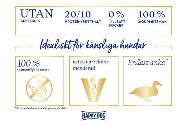 Det exceptionellt välsmakande super-premium-helfodret Happy Dog France är perfekt för alla anspråksfulla, vuxna finsmakare från 11 kg som letar efter variation eller är väldigt kräsna.