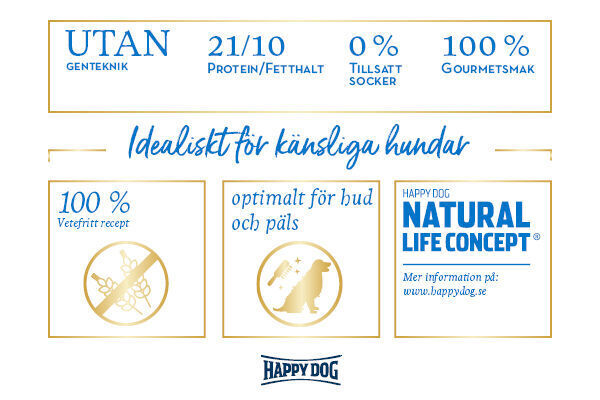 Den exceptionellt välsmakande och balanserade super-premium-helfodret Happy Dog Greece är idealiskt för alla kräsna, vuxna finsmakare från 11 kg som letar efter variation eller det speciella fodret.