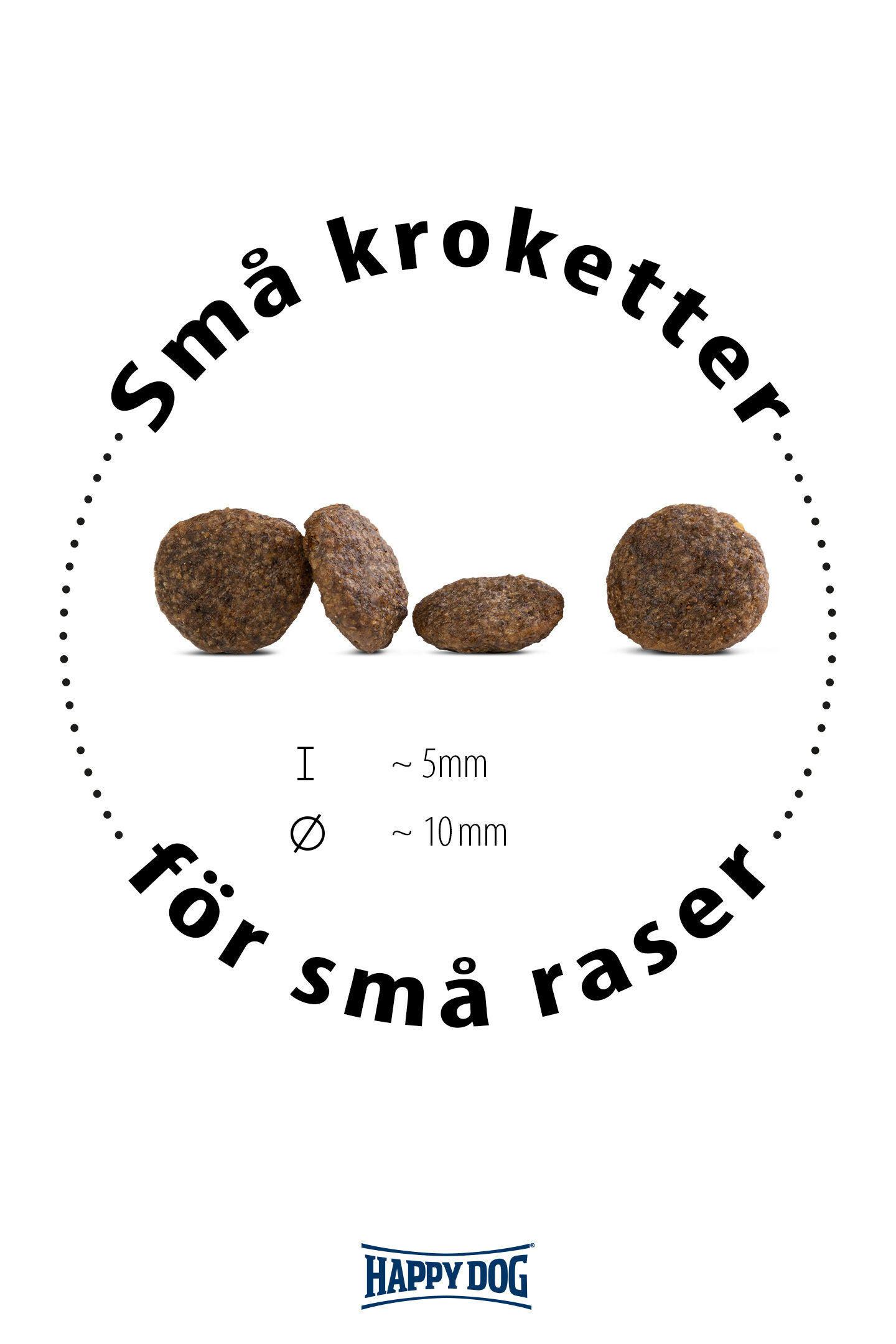 De små kroketterna är optimalt anpassade till tänderna hos små hundraser upp till 10 kg.