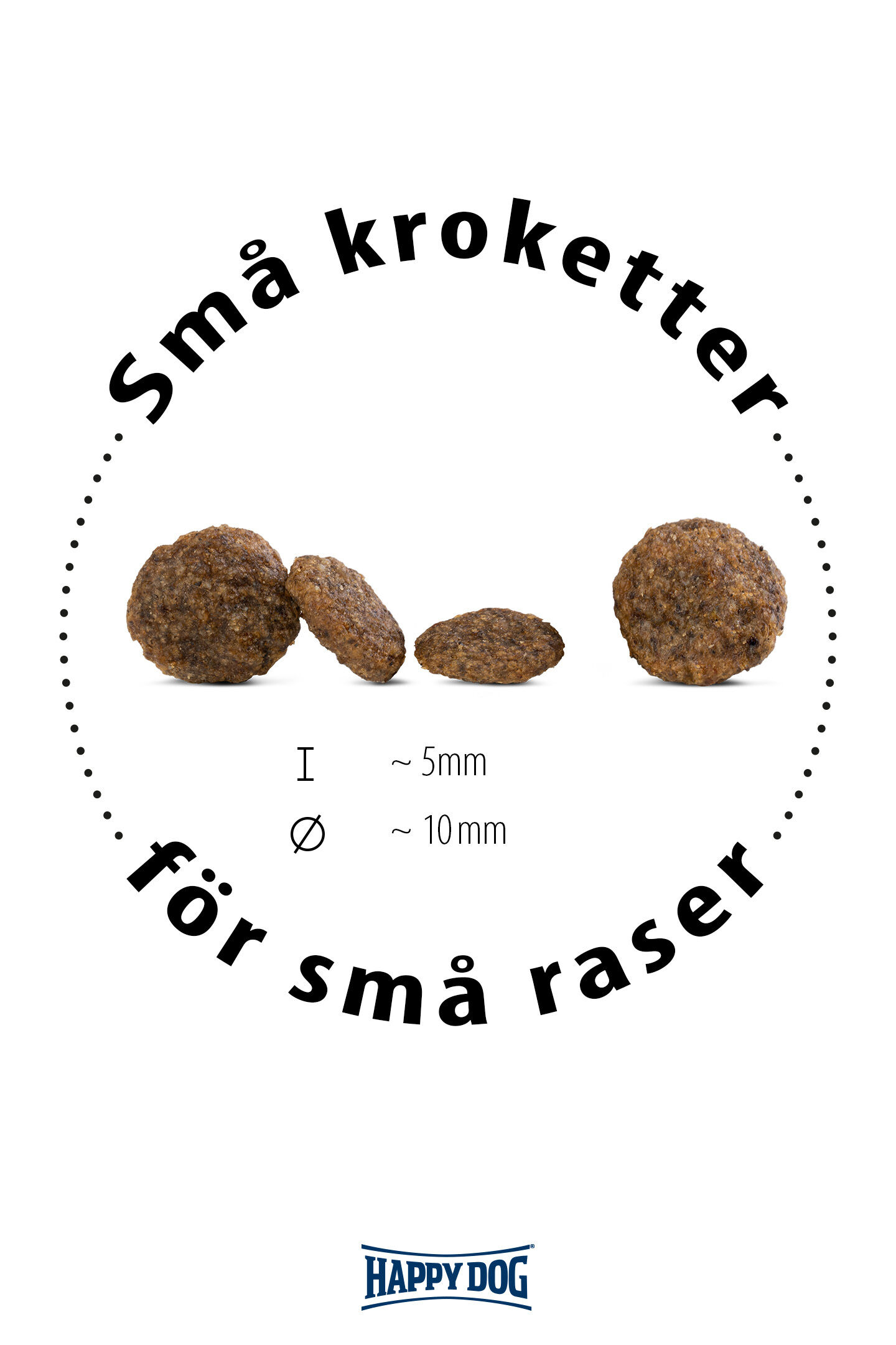 Letar du efter ett särskilt sätt att skämma bort din fyrbenta vän på? Eller har du en näringskänslig hund som tenderar till matsmältningsproblem och har problem med hud och päls? Detta kan bero på foderintolerans. Häst som enda animaliska proteinkälla och glutenfri potatis gör Happy Dog Sensible Mini Montana till en smakupplevelse även för näringskänsliga fyrbenta vänner. Potatis innehåller inte gluten och rekommenderas därför till små hundar med spannmålsintolerans. Häst är en sällsynt och exklusiv proteinkälla och kännetecknas av sin optimala tolerans. Värdefulla omega-3- och omega-6-fettsyror – viktiga för en sund hud och en glänsande päls – avrundar det exklusiva receptet. Detta gör Sensible Mini Montana till ett balanserat och idealiskt superpremium-foder för hundar med allergier eller foderintoleranser. Det exceptionellt välsmakande fodret Happy Dog Sensible Mini Montana är även perfekt för alla krävande, vuxna finsmakare upp till 10 kg som letar efter en förändring eller som är väldigt kräsna. De extra små kroketterna är mycket lätta att tugga.