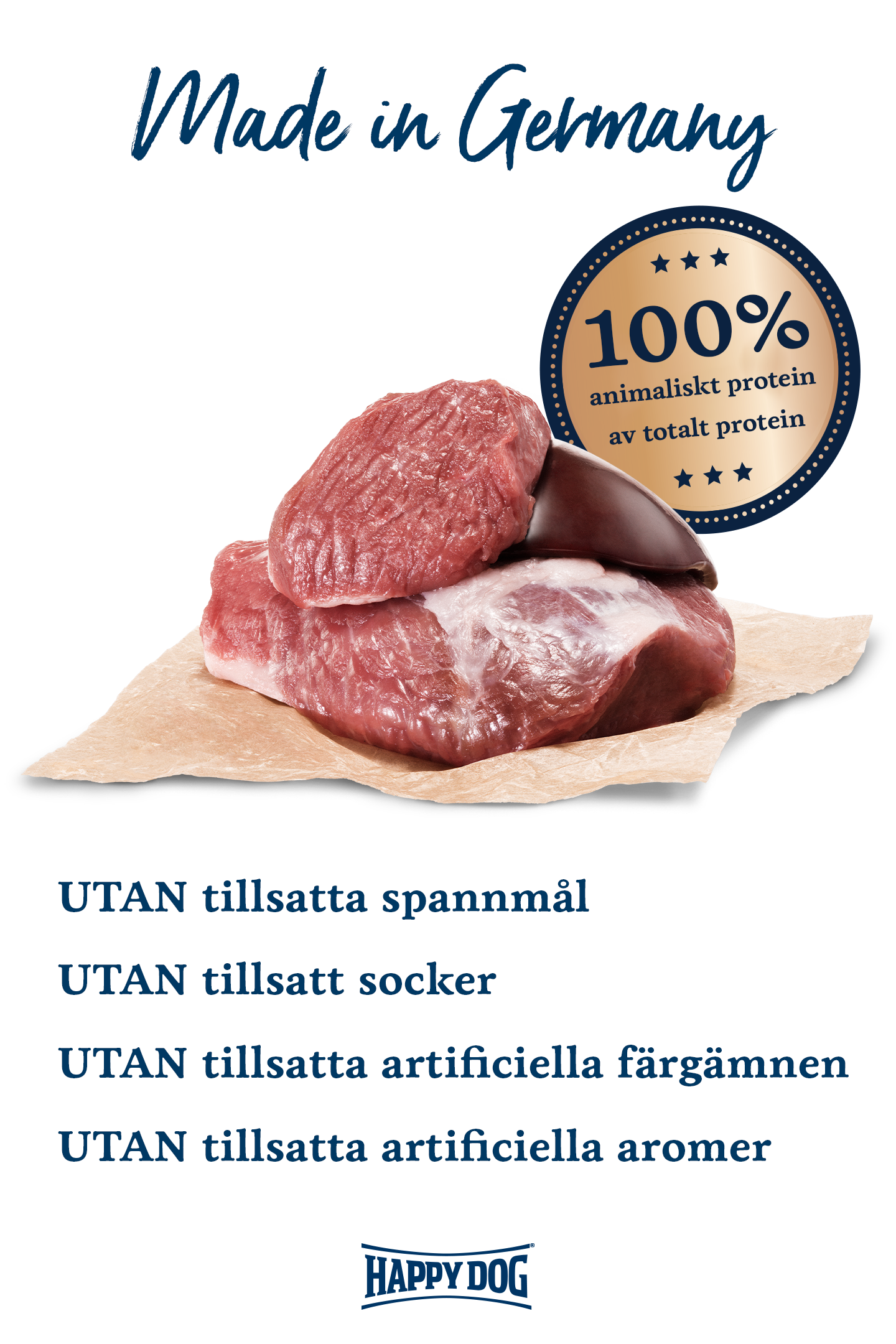 Med Happy Dog Sensible Pure Neuseeland premiumvåtfoder för hundar matar du ren natur. Vårt Premium-köttfoder tillverkas till 100 % av värdefullt kött och slaktbiprodukter, såsom hjärta, lungor och lever, och innehåller essentiella vitaminer och mineraler. Kött och slaktbiprodukter kommer uteslutande från lamm*. Naturligtvis tillverkas våtfodret utan soja eller andra vegetabiliska tillsatser.