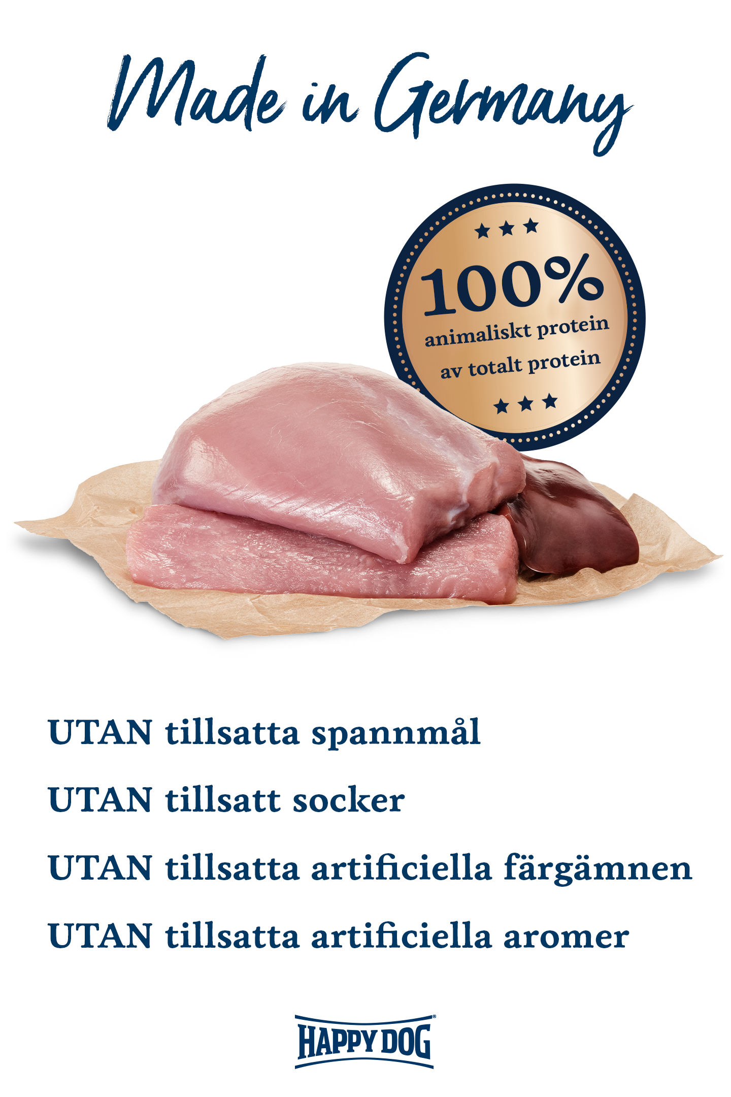 Då är Happy Dog Sensible Pure-burkarna det perfekta fodret för dig och din fyrbenta vän. För premium-våtfodret är till 100 % gjort av av en enda proteinkälla och innehåller inget socker, ingen soja och inga konstgjorda färg- eller smakämnen. I Happy Dog Sensible Pure Sardinia ingår endast närande getkött och slaktbiprodukter från get.